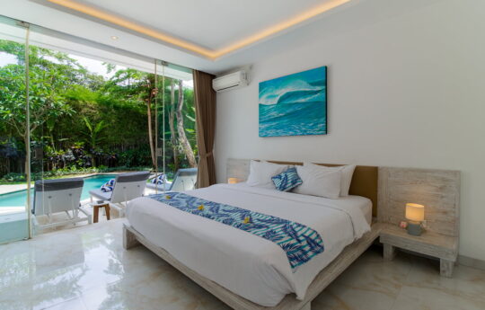 Bring the whole family and enjoy Villa Tibu Indah, a 3-bedroom tropical holiday villa rental near Canggu’s popular cafes, day spas and beach clubs. Three separate Bali-style pavillion house modern, fully air-conditioned bedrooms and luxe en-suite bathrooms, a sunny swimming pool and in-house villa staff; this is a fantastic villa where you can unwind and completely relax.