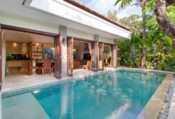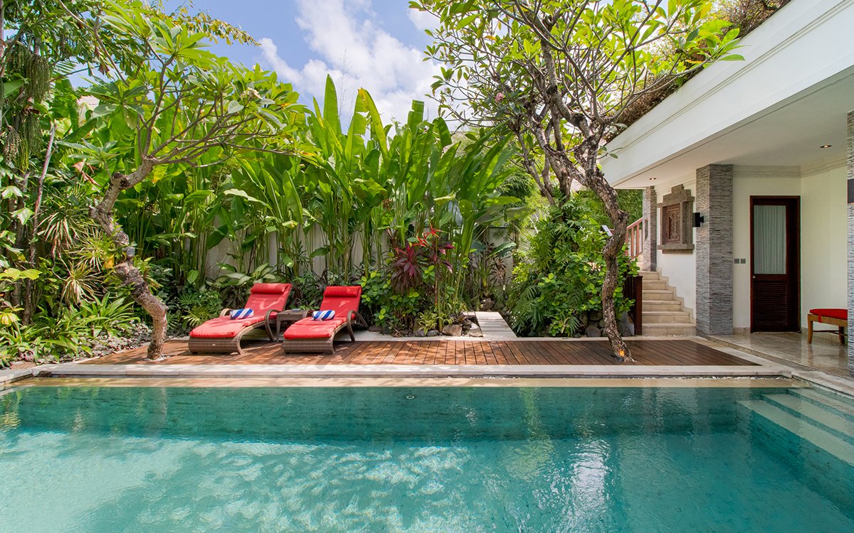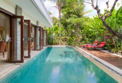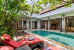 Villa Tranquil is a modern 3-bedroom Seminyak rental in a fantastic location near the famous Eat Street, Double Six Beach and Cocoon Beach Club. Boasting large, fully air-conditioned bedrooms, a private swimming pool, housekeepers and open-plan interiors, this budget Bali villa is a top choice for those wanting to be near everything popular in Seminyak without paying a fortune. Take a close look – you’ll be impressed!