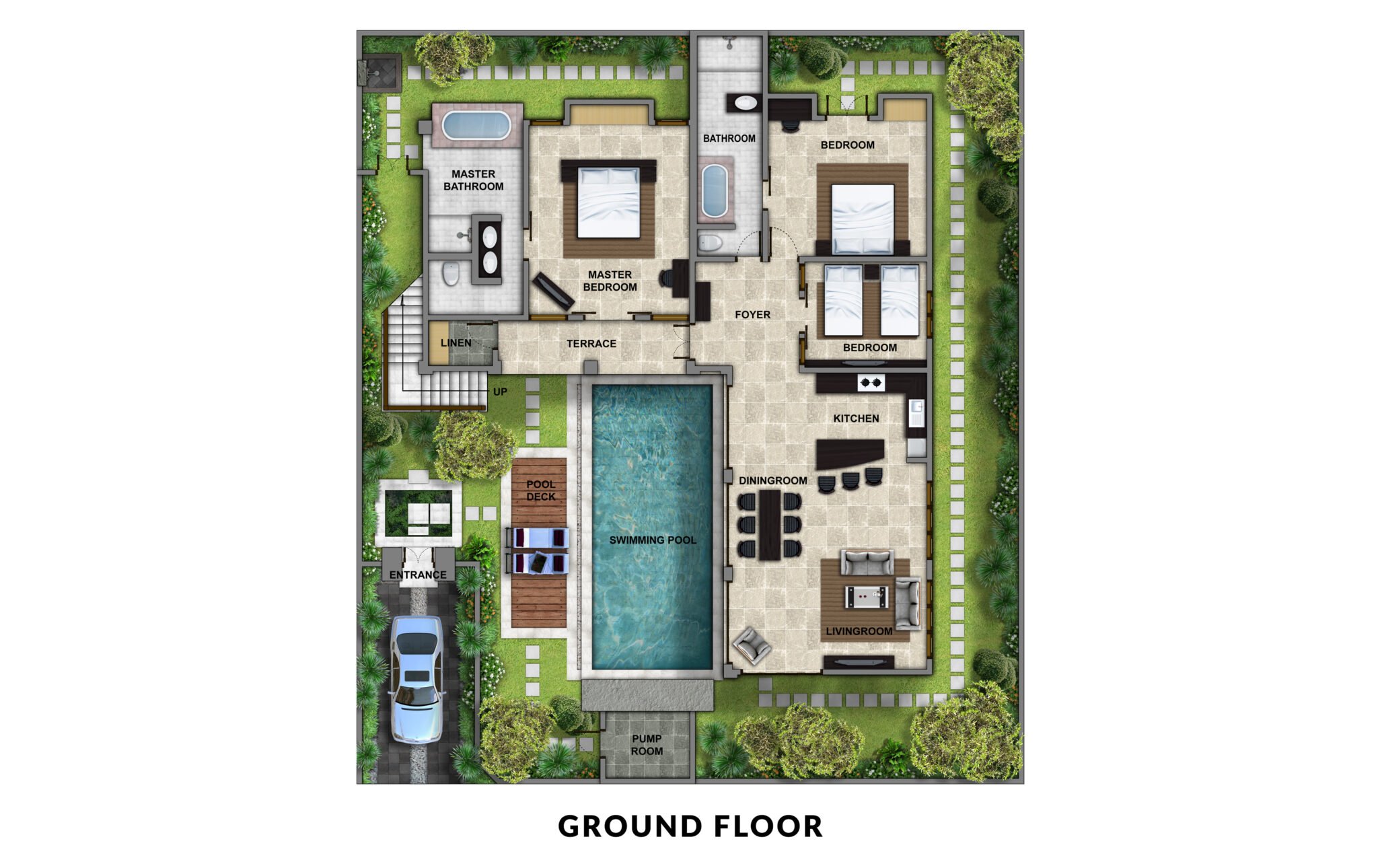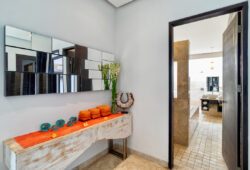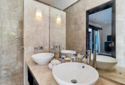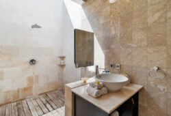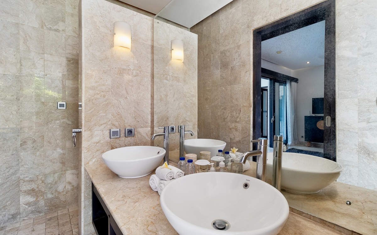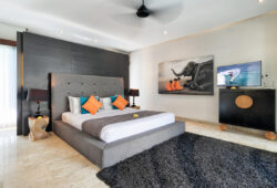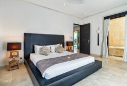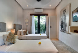 Guests of the master suite will enjoy the luxury of a king-size bed, a private en-suite and a patio area opening onto the swimming pool. Another guest suite features a queen-size bed and twin beds in the third room, which can be converted to a king; these rooms have a shared en-suite. The rooms are modern, with beautiful marble floors, flat-screen TVs and the option of ceiling fans or AC.