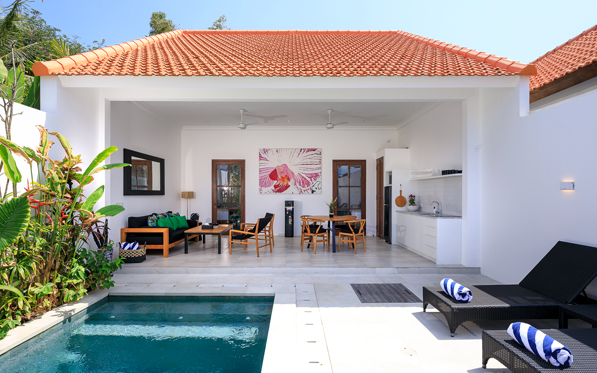 Villa Portsea is a 2 bedroom Seminyak holiday villa rental in a central location near some of Seminyak’s best cafes, day spas and beach clubs, all within walking distance. With a sparkling private pool, friendly villa staff and fully air-conditioned enclosed living areas, this is an excellent villa for the whole family to enjoy their next Bali trip.
