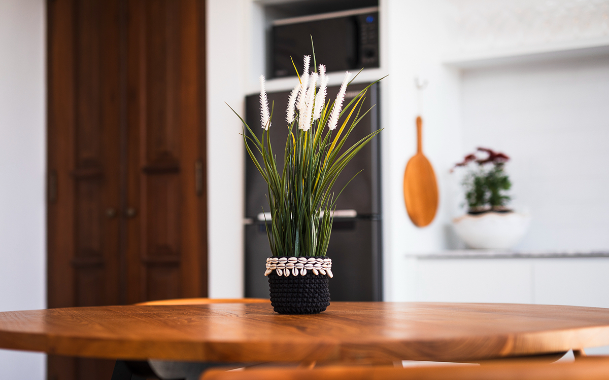 Enjoy the peaceful outdoor space of this villa, where exotic plants surround a private pool. Four sunbeds are ready for you to relax. It’s the perfect spot for sunbathing, catching up on holiday reading, or watching the kids play in the pool.