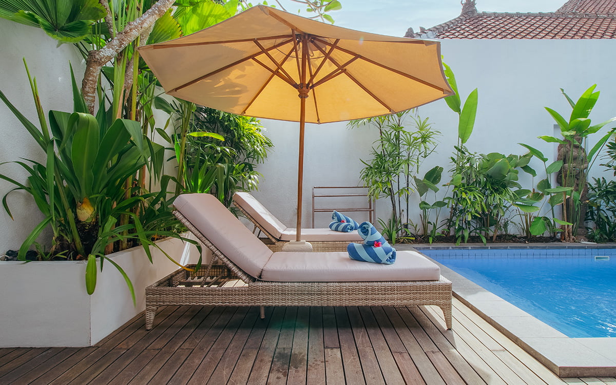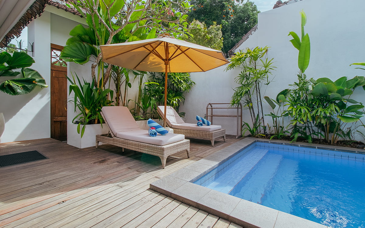 Samaja Villas are 2 bedroom Seminyak holiday villa rentals near Double Six Beach and all the vibrant beach bars of Seminyak Beach (KU DE TA & Potato Head). Perfect if you want a beach-style holiday with the family with a little shopping thrown in. Set within a private villa complex guests will be treated to excellent service from the team of Balinese staff making this the ideal holiday accommodation for a small family or group of friends seeking private Seminyak villa in Bali.