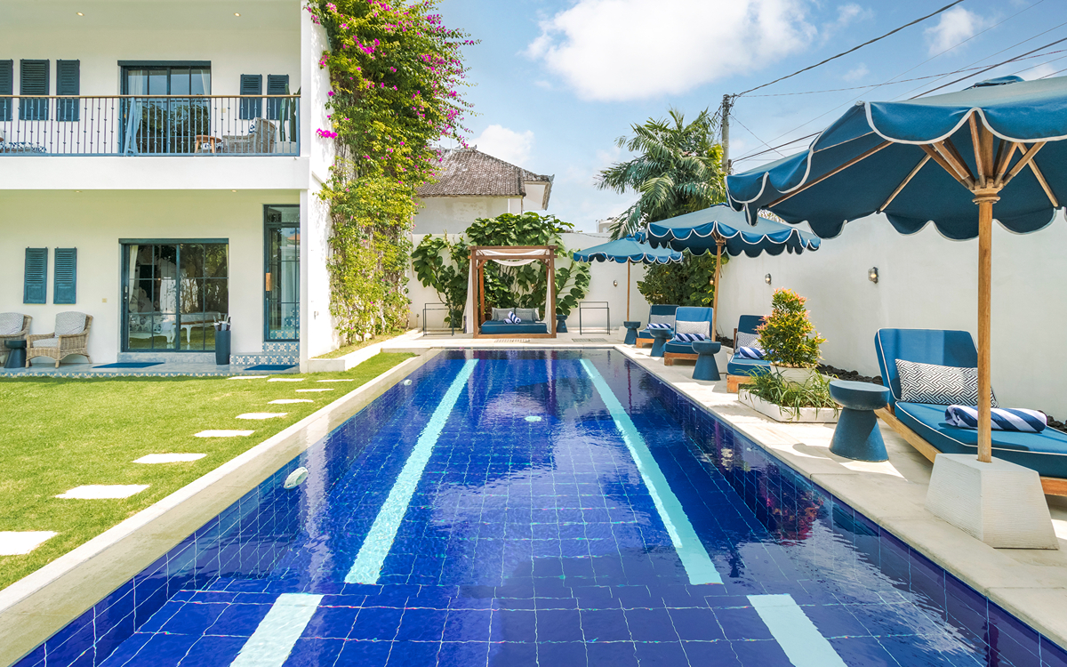 In a great Seminyak location, Villa Pintu Biru is a family-friendly 5-bedroom Seminyak holiday villa rental in Bali. Its location is central, between the famous Oberoi Road (aka Eat Street) and the chic Petitenget. With a large private garden with a pool and toys, this is the ultimate family villa in the heart of Bali’s most popular beach area, where you’re only 1.3 km to Double Six Beach & 700 metres to The Seminyak Square Shopping Mall – take the kids and have the best time!!