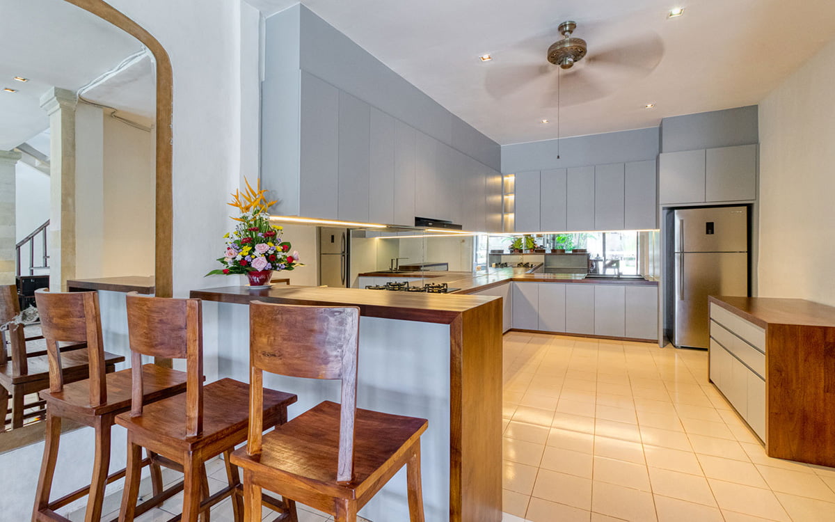 Villa Matahari has three spacious and fully air-conditioned bedrooms and is built on a beachside bungalow with a traditional alang alang roof and many open spaces, which gives guests plenty of room to relax and unwind after a day of shopping and sightseeing. The main bedroom is on the ground floor, with the kitchen and open-plan living areas. The bedroom has an attached en-suite with a bathtub and rain shower. On the second floor, you’ll find the 2nd and 3rd bedrooms with another separate living area. Each bedroom boasts private en-suite bathrooms and tropical rain showers. All bedrooms have king-sized beds and come with a flat-screen TV.