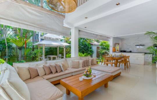 Villa Bamboo is located within the safe confines of the exclusive Aramanis Villa Estate, just off Jalan Raya Seminyak. This 4-bedroom Seminyak villa holiday rental has great indoor/outdoor spaces, perfect for a large family or group of friends on a Bali getaway. Guests will be treated to 24-hour five-star service by the professionally trained staff. Plus, you only 1.3 km to Double Six Beach, 700 metres to Bintang Supermarket & 500 metres to Made’s Warung. Great location and lovely villa – book now & enjoy!